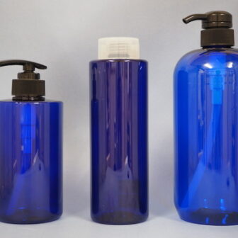 今回は、材質/PETを着色したボトルについてご紹介します。ナチュラル(透明)とは、がらりと違った雰囲気のボトルとなり、おしゃれな印象になるのではないでしょうか。ポンプは黒、CAPは半透明のものを装着させています。個人的には、ブルー系の色が好みであり、自宅でも使用しています。印刷やラベルが無くとも、容器そのものの存在感が有り、すっきりしたデザインが好きな私は、このまま使用しています。<ナチュラル(透明)でのPETボトル><CAPやポンプを装着したPETボトル><YF-1000/ナチュラル…