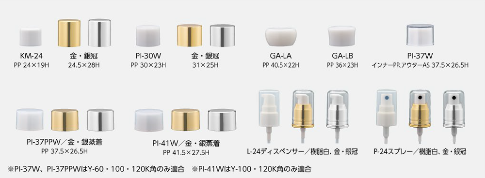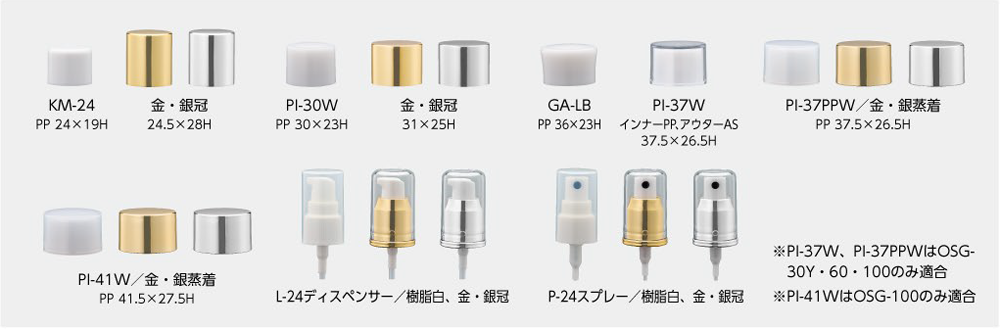 - さまざまなデザインのキャップやディスペンサーが適合します。