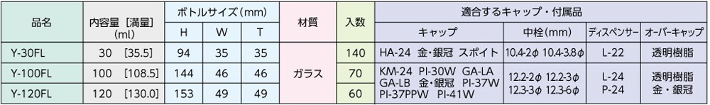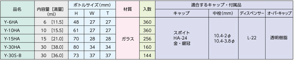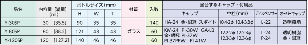 - 装着キャップにより様々なイメージを創ります。Y-30SPは、スポイトを付けることができます。