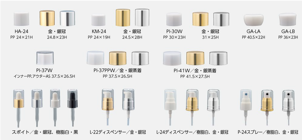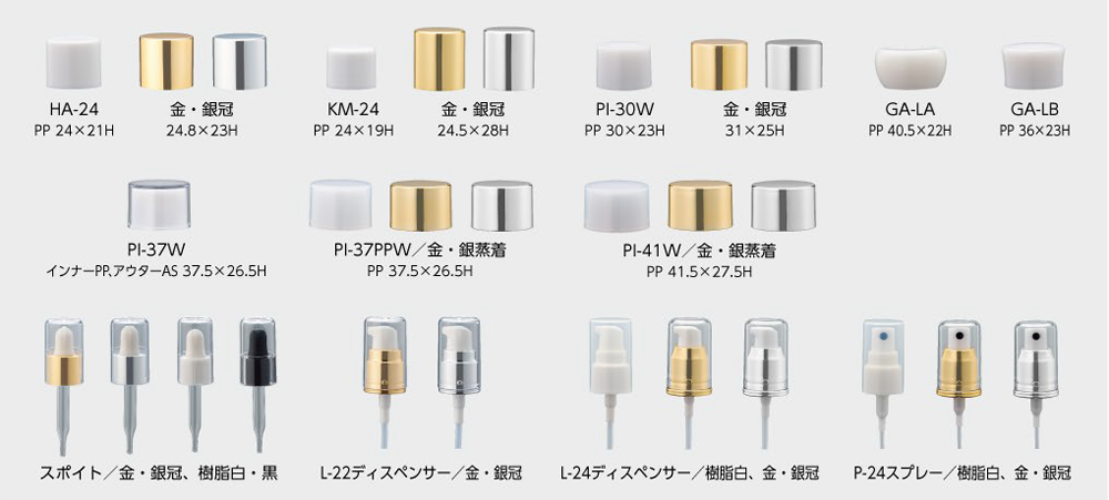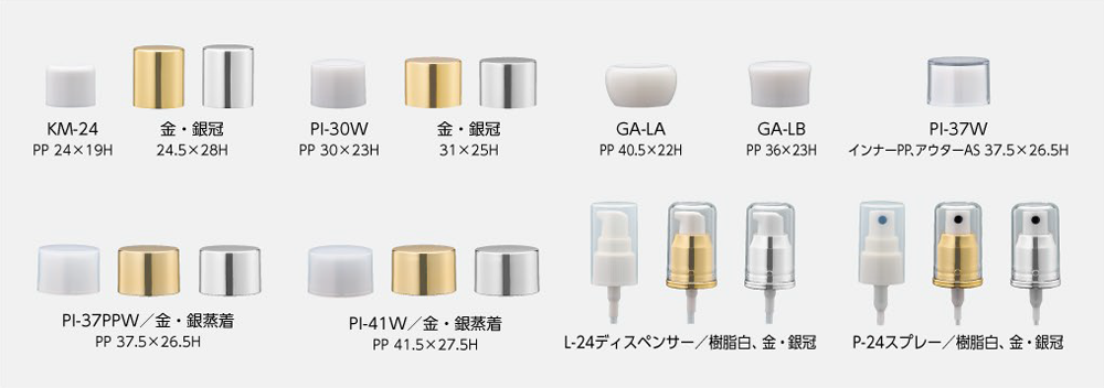 各容器に対し、キャップ・ディスペンサー・ポンプ類を見やすい画像で選べるようになりました。