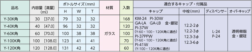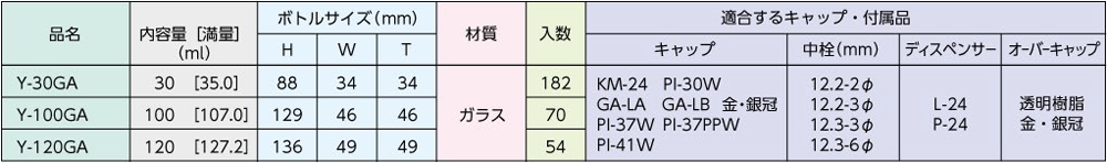 - スポイト、又はディスペンサー、金・銀冠が適合するガラス瓶シリーズです。(6ml-30ml)