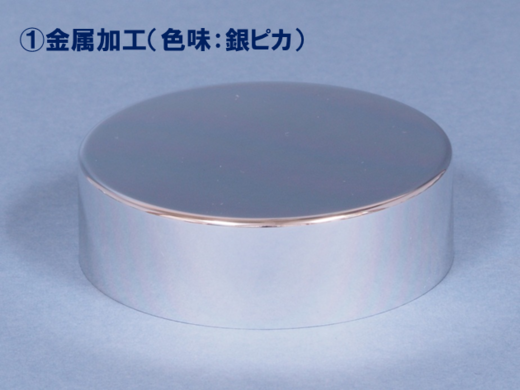特に化粧品容器には、高級感のある金・銀キャップが多く使われます。金・銀の技法として、「金属加工」「蒸着」「ホットスタンプ」等が挙げられます。