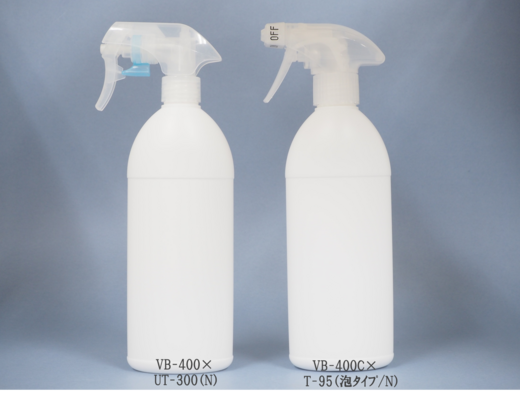 弊社既存のトリガースプレーの付くボトル「VB400」と同形状にて、ネジ口の異なる「VB-400C」を新たにラインナップに加えました。