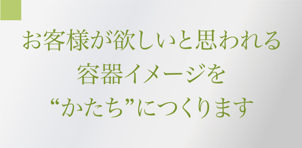 ガラス瓶やプラスチック容器の、企画の段階からトータルプランニングでご対応いたします。