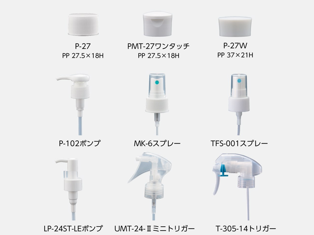 | 適合する部品 ディスペンサー | P-102ポンプ MK-6スプレー TFS-001スプレー LP-24ST-LEポンプ UMT-24-Ⅱミニトリガー T-305-14トリガー |